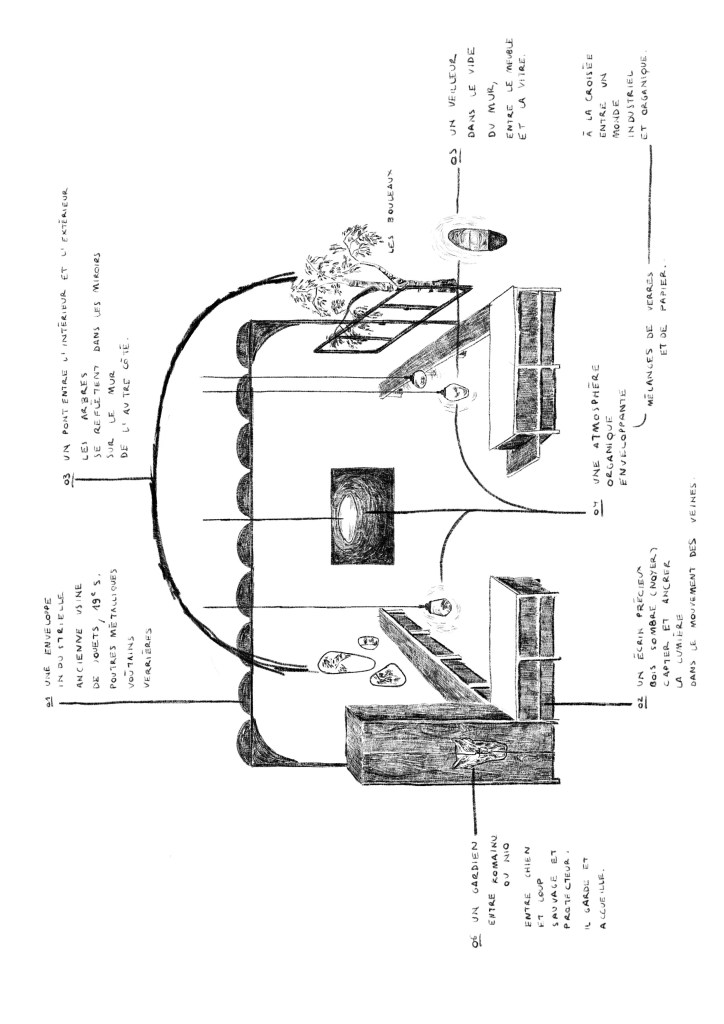 Les matériaux et les pièces sélectionnées et dessinées sur-mesure racontent des histoires : celles d’un gardien à l’entrée, de la laitance des lumières, de papier et de verres, des miroirs comme des gouttes de pluie ou de soleil, comme un pont avec la nature, comme un temps avec soi.